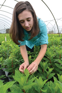 Saying that Jane wears a lot of hats would be an understatement. Although she now has help with IPM for the annuals and perennials, Jane is still responsible for irrigation and IPM for all woody crops, along with production start to finish for flowering shrubs.
