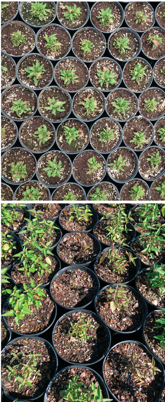 Pictured top: Uniform emergence of salvia. Plants emerge uniformly when the proper amount of cold has been delivered during dormancy.