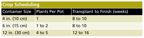 Granvia is not recommended for containers smaller than a 1-gallon/8-in. pot. Suggested crop times are: