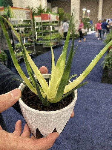 As for the plant, this Solar Flare aloe from the folks at Heart of Florida is the first variegated aloe that I have seen. Austin Bryant told me that it was found as an advantageous sucker on an all-green aloe out in the greenhouse. After multiple generations of growing it out, he assures us that the variegation—a creamy yellowish that arises from the rosette with green leaf tips—is stable. It looks so nice you almost wouldn’t want to break off a leaf to ease your burn.