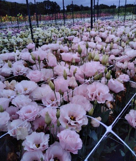 Tater and I enjoyed seeing the lisianthus trial the most! There were more than sixty varieties in the trial, and Sakata’s tech specialist Bob Croft took Tater and I around to see all the beauty. I’ve never grown lisianthus outdoors, we always put them in a tunnel. But there were some exceptional varieties that were over 3 ft. tall—without shadecloth! Below are the strongest performing varieties, with the highest bloom count and stem length. These beauties did incredibly well in the outdoor trial: