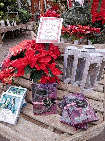… and, of course, gorgeous, high-quality poinsettias of varying sizes, along with other holiday-themed live goods. They also carried décor, ornaments and gifts, but not a tremendous amount. I did like how they accented the gardening tools that make great gifts, too, right up front to call them out.