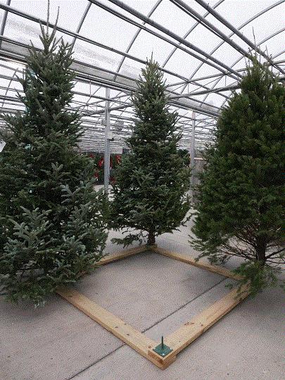 Besides the custom wreaths and bows, Dickman Farms offered a wide selection of porch pot components, kissing balls, swags, silks, bows and ribbons, Christmas trees (which are pre-drilled and displayed on these cool 2x4 squares so customers can see the whole tree standing) …