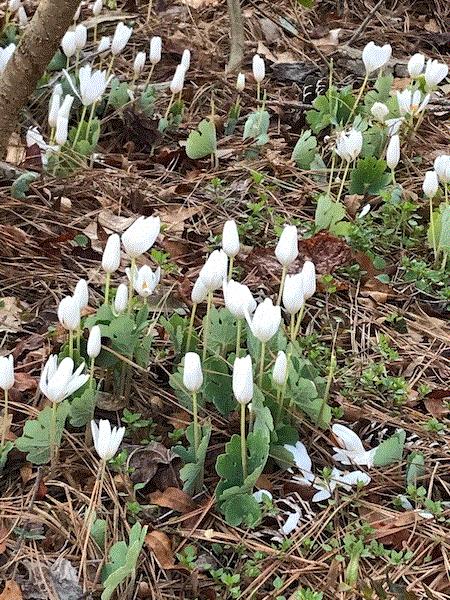 I’d told y’all that I live in a house built by my wife’s granduncle, who, along with his wife, was an avid gardener. I often find unusual plants popping out of the ground, like these bloodroots this spring.