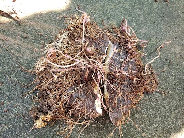 S. Stewart moved into her 20-year-old house eight years ago. Her garden is full of unusual plants planted by the previous homeowner, who has a degree in horticulture. Look what she dragged out of her garden a couple of weeks ago! S. has been working in her garden during the lockdown and spotted a weird growth in one of the beds in front of her house. Now, talk about weird! It looks like a grotesque mushroom-like plate or bulb, with long, curly, springy and bulb-y tentacles. She didn't want to touch it since she didn't know what it was.