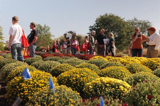 Ball Seed’s inaugural “Ball for Fall” event—held over two days, September 19 and October 3—brought in some 200 grower customers to see how the newest mums, pansies and other fall-themed varieties were holding up during an unseasonably warm early autumn.