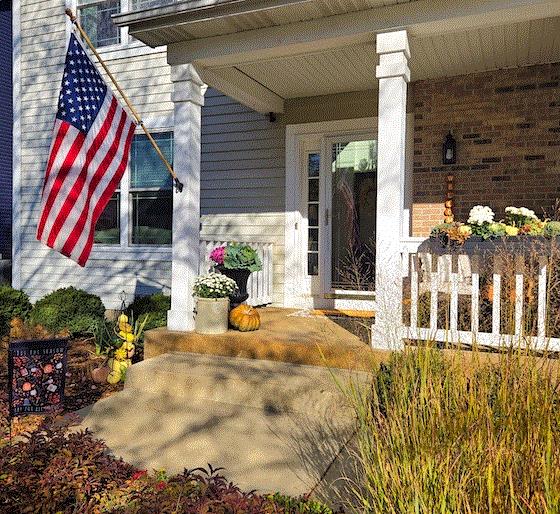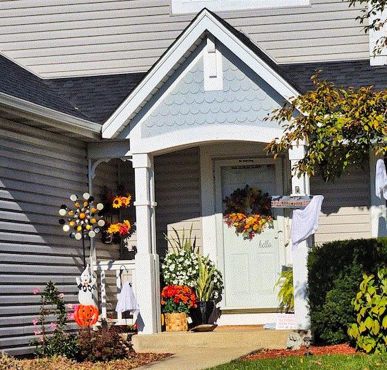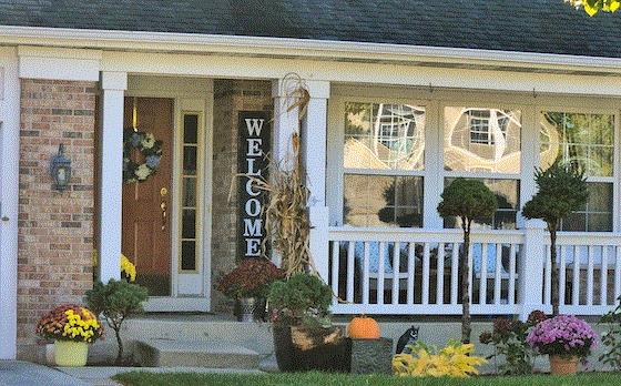 Tasteful front porch stylings of Sales Assistant Adriana Heikkila exhibiting all three main categories of decor.