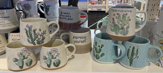 Blue Sky had cactus plant mugs and a slew of pet-related products, including bowls and dishes—for you and your pet!