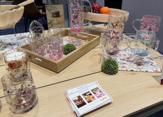I LOVED these bowls and cups from Widgeteer, which have real dried flowers molded inside the plastic.